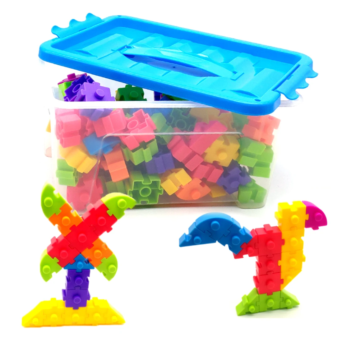 100Pcs Children Puzzle Plastic Assembly Building Block Toy With Box Interconnecting Blocks Toys For